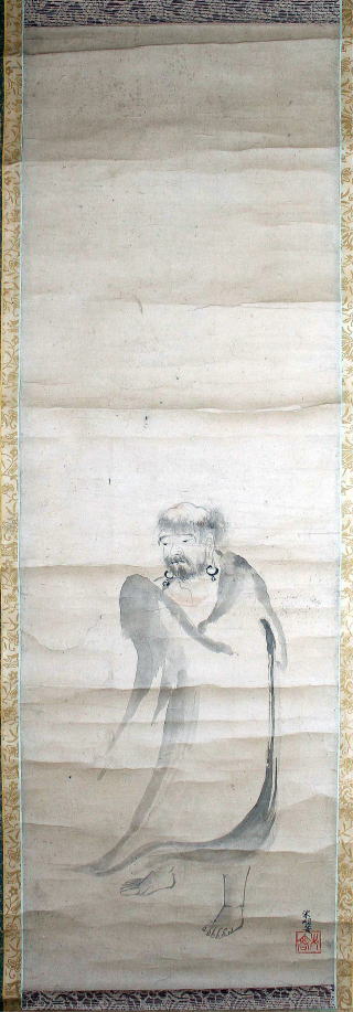【時 代】 江戸時代前期 【法 量】 タテ76.7×ヨコ25.0cm 【材 質】 紙本着彩 【備 考】 15世紀中頃以降活躍する土蔵(倉)という画派を継ぐ江戸時代前期の土倉栄相の作品。 同作者による作品である、町指定文化財の『釈迦三尊・地蔵・十王図』や『白衣観音図』とともに、土倉栄相の画風 の幅広さを示す。