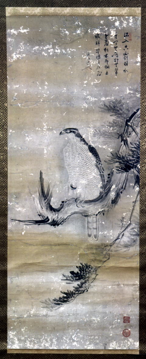 当図は、直庵の作品の中では、比較的穏やかに描かれているものの、鷹の眼光は鋭く、