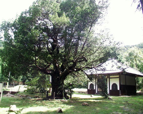 樹齢500〜600年と推定される古木。樹高は約17m、根回り約4.6mをはかる。 本来は海岸や島などに自生するものであるが、内陸部のある当地に順応して生 育していることは珍しい。